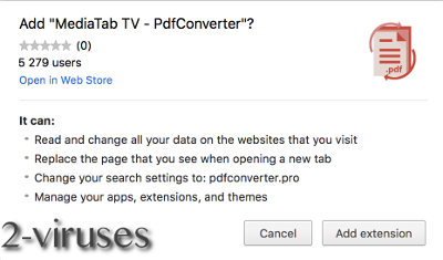 Wie bereits erwähnt, steckt hinter PdfConverter.pro eine bösartige Erweiterung namens „MediaTab TV – PdfConverter“. Sie ist im Store von Google Chrome erhältlich und steht eindeutig in einer Beziehung mit anderen Mediatab-Viren wie Search.futuremediatab.com oder Search.smartmediatabsearch.com.