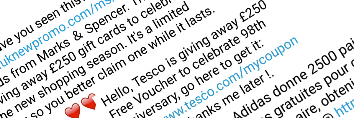 Die Nachrichten enthalten einen Link zu einer Website, die dazu auffordert, die Nachricht mit Freunden zu teilen, damit sie den Preis auch erhalten können. So breitet sich der Scam aus.